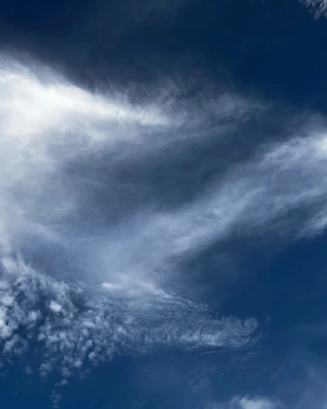 満月🌕で皆既月食だった夜の翌る日 ふと見上げると 2頭の龍🐉みたいな雲☁️ (あぁぁ、一頭めの顔が切れた💦) #秋の空 #龍雲